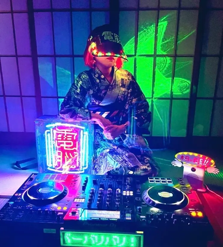 日本の文化や大衆娯楽を独自の視点で“サイバー”に再構築。世界初の“身にまとうネオン”を背負い、多ジャンル・多拠点のイベントに出演中。音とパフォーマンスで“遊びと演出”から生まれたカルチャーを次世代へ繋ぐ。