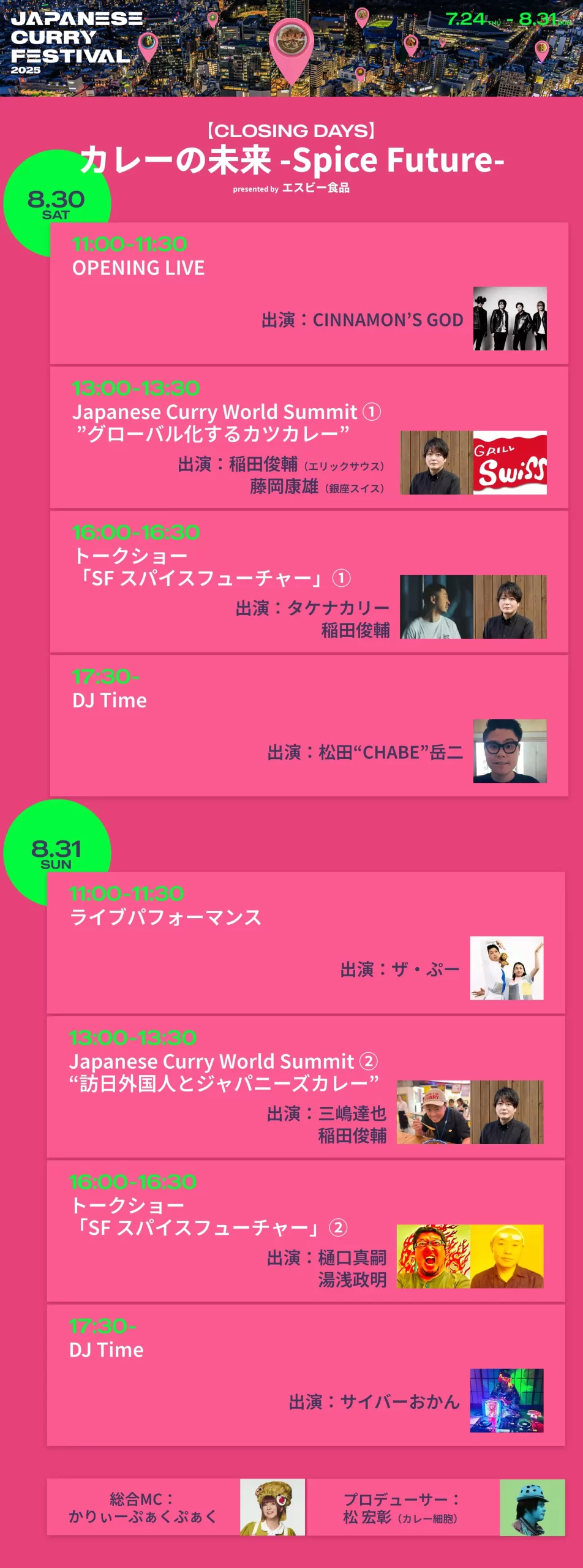 プログラム「Japanese Curry World Summit」では「グローバル化するカツカレー」(8/30)、「訪日外国人とジャパニーズカレー」(8/31)という2つの角度から、ジャパニーズカレーと世界の関わりの現在と未来についてトーク。